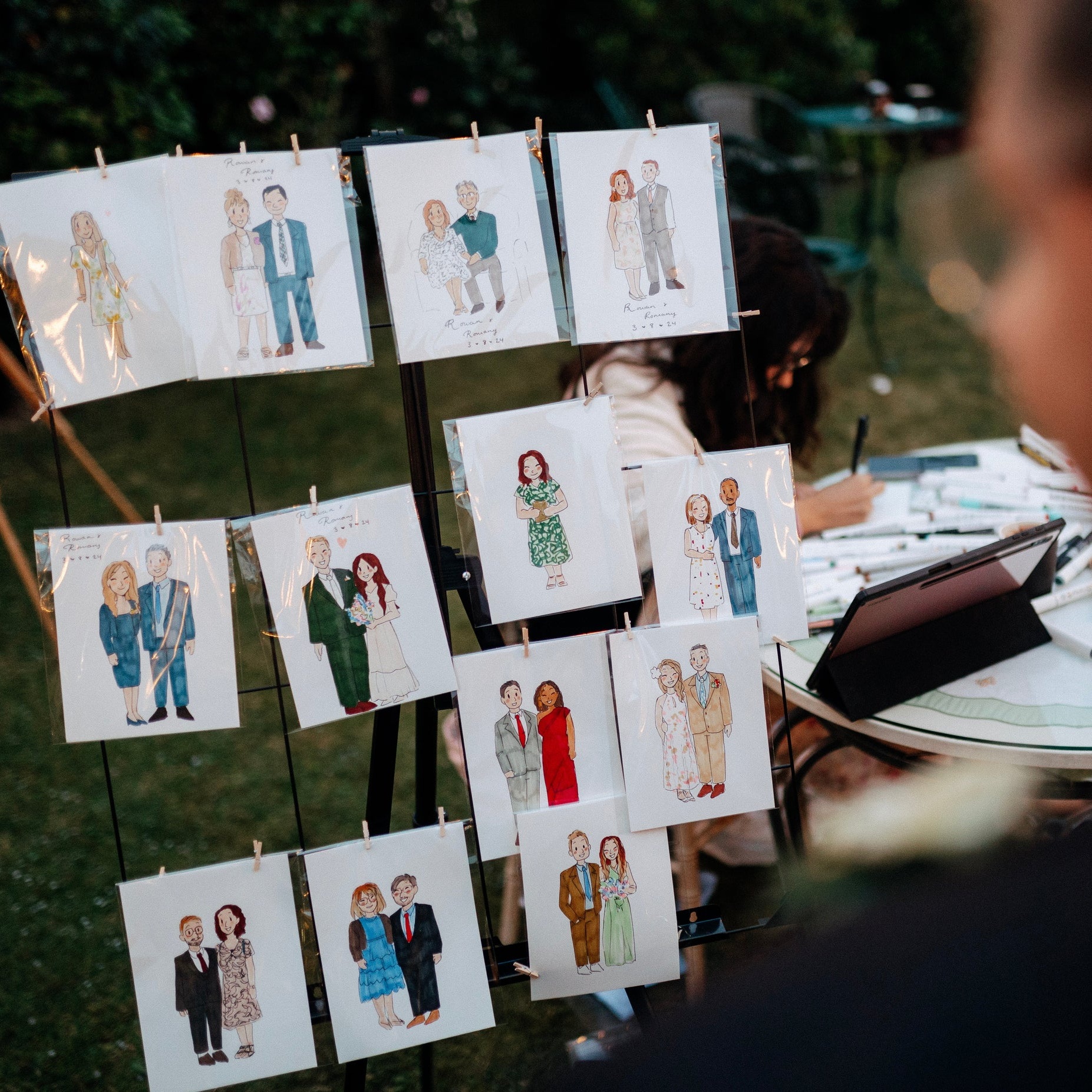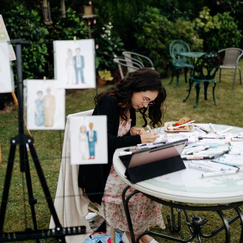 Kids gravitate to my table at weddings. Why not let them draw along with me? Included is a sketch of the couple for them to colour using the stationary provided.
